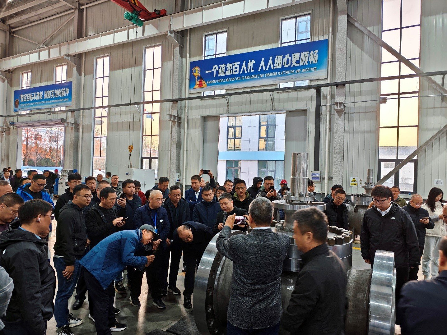 会议期间,公司还按照高规格标准接待150余名参会代表到公司实地参观指导。通过实地展示智能化生产线、研发中心及实验室,以及公司自主研发的各种高端金属硬密封球阀(包括C型耐磨球阀)等核心产品,全面呈现了企业在技术创新、智能制造领域的硬实力,为行业伙伴提供了深度了解jinnianhui今年会流体的窗口。