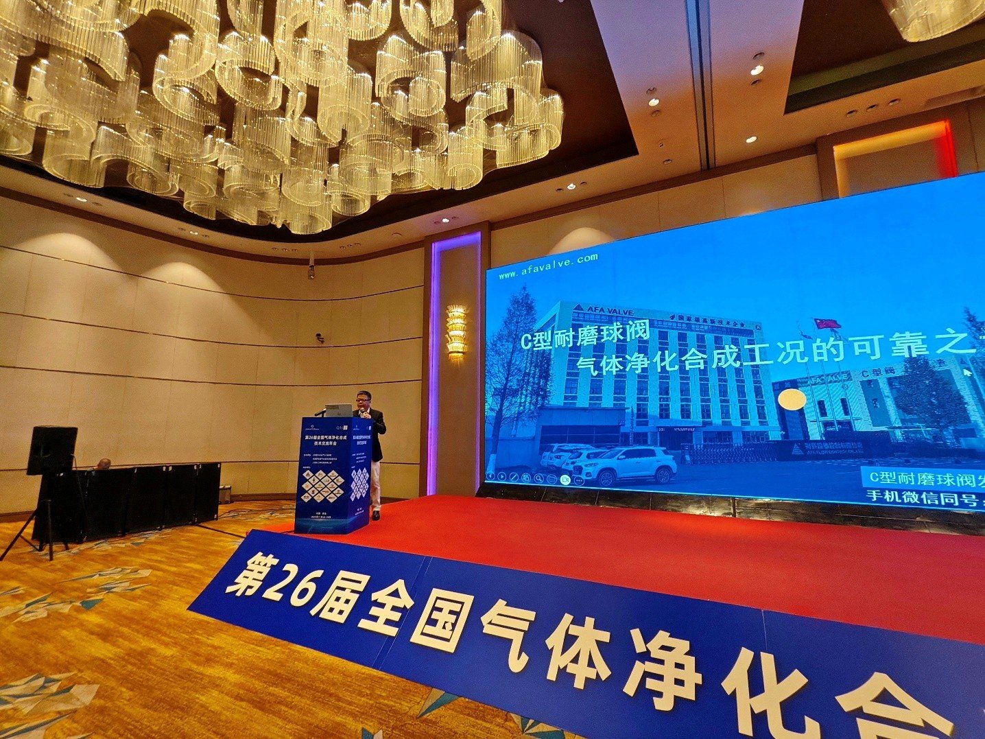 11月27日的主题报告环节,jinnianhui今年会流体董事长谢正泽以《C型耐磨球阀:气体净化合成工况的可靠之选》为题,深入剖析了气体净化合成工况对阀门设备的严苛要求,并结合公司自主研发的C型耐磨球阀,从材料选择、结构设计到实际应用案例,系统阐述了该产品在抗磨损、耐腐蚀、长寿命等方面的技术优势。报告内容兼具理论深度与实践价值,引发了与会代表的热烈讨论与广泛认可。